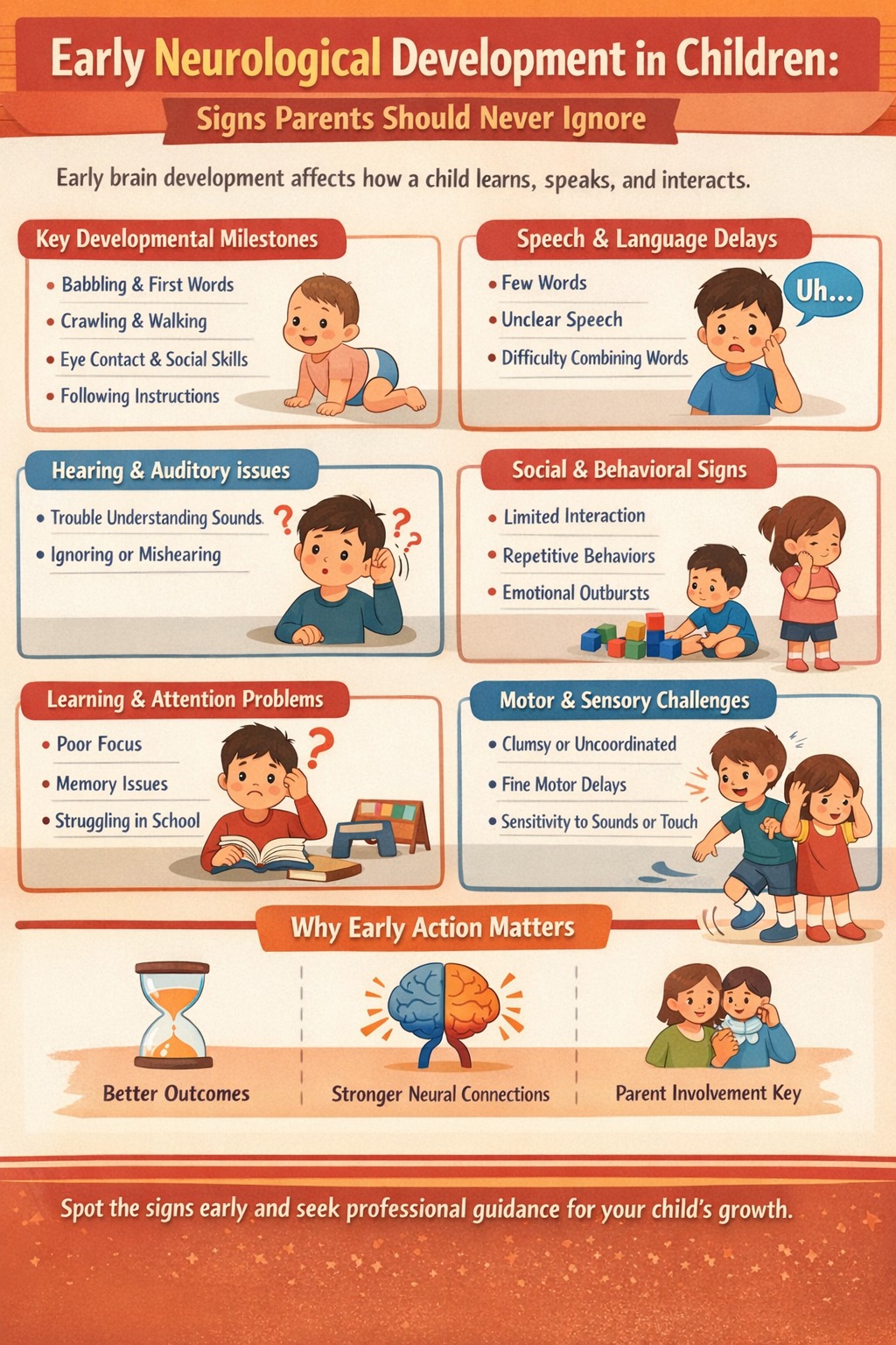 Early neurological development plays a central role in how a child communicates, learns, behaves, and interacts with the world. During the first few years of life, the brain undergoes rapid growth, forming neural connections that influence speech, hearing, movement, attention, and emotional regulation. Any disruption in this process can affect a child’s overall development.
